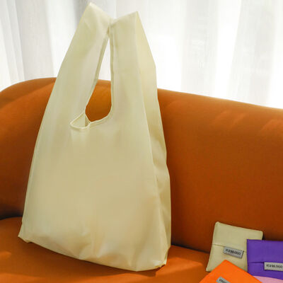 Grandes sacolas reutilizáveis dobráveis para supermercado feitas de material durável de nylon e poliéster.